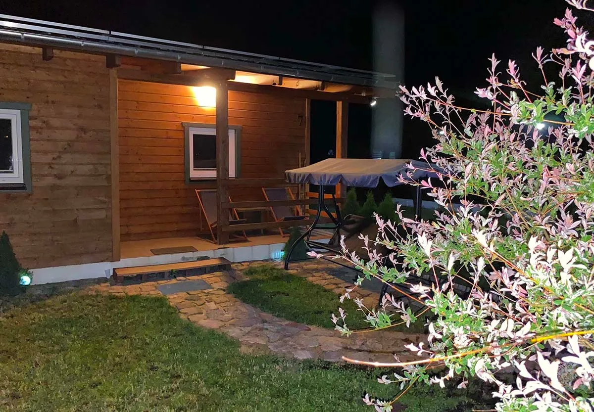 To nasz najnowszy domek. Piękny i przestronny. Wykonany na styl góralski, cały w drewnie. Trzypokojowy, komfortowy i ekskluzywny. Wyposażony w aneks kuchenny oraz nowoczesną łazienkę. Posiada ładny ogród, leżaki, bezpośrednie wyjście na plażę i prywatną furtkę.